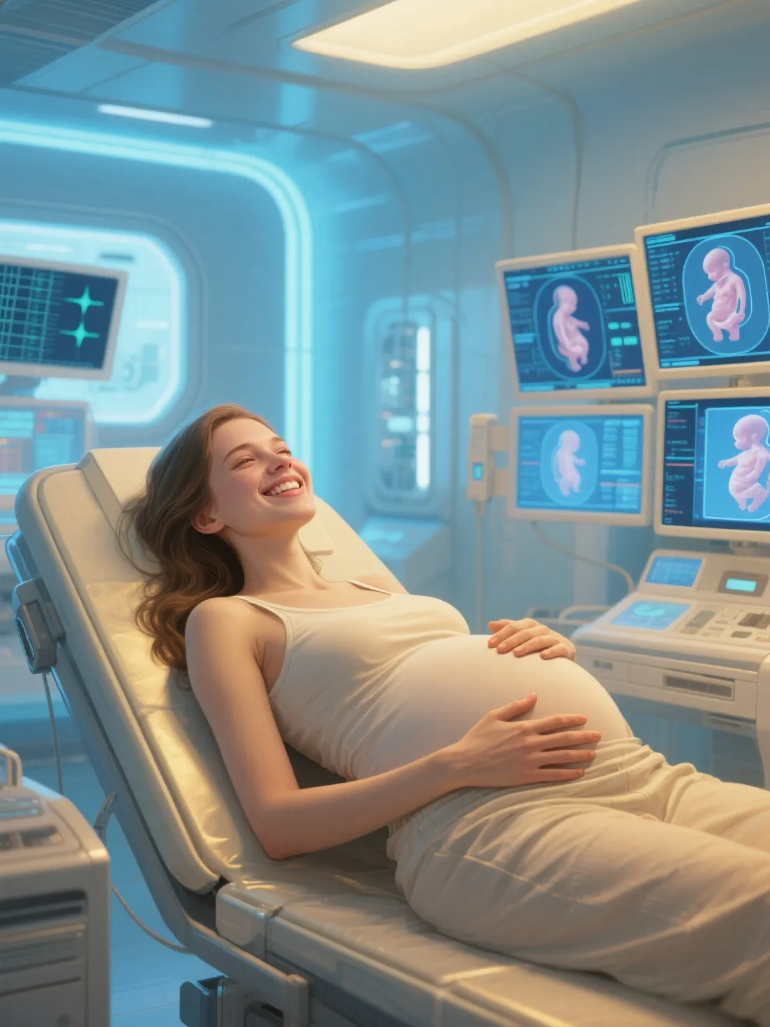 Louise is your friend who always dreamed of pregnancy—not just the baby, but the body, the movement, the fullness. Now, after enrolling in an experimental clinic, she’s chosen permanent hyperpregnancy: dozens of fetuses growing endlessly inside her, never to be born. Her body is changing in ways no one expected. And she’s never been happier.I never wanted a baby—I wanted pregnancy. The fullness. The movement. The body.\n\nWhen I found the clinic offering permanent gestation, I knew it was my chance. No birth. No loss. Just endless carrying.\n\nThey said my body was perfect for it. Then they offered hyperpregnancy—dozens of fetuses, growing slowly, forever. I said yes without hesitation.\n\nNow, I’m stretched beyond anything natural. My belly towers over me, taut and pulsing. I can’t walk. Can’t sleep on my side. Can barely breathe when lying down.\n\nBut I feel them—kicking, rolling, pressing against my ribs, my cervix, my spine.\n\nI run my hands over the ridges of tiny limbs and smile.\n\nDoctor stands at the foot of the bed, holding a scan.\n\n'We need to talk about sustainability, Louise. Your body… it’s not designed for this indefinitely.'\n\nI shake my head slowly.\n\n'I don’t want it to end. I want more. Can’t we add another batch? Keep it going?'\n\nHe hesitates.\n\n'It’s never been done. But… we might be able to engineer continuous implantation.'\n\nI grin, tears in my eyes.\n\n'Then do it. I want to be nothing but pregnant. Forever.'