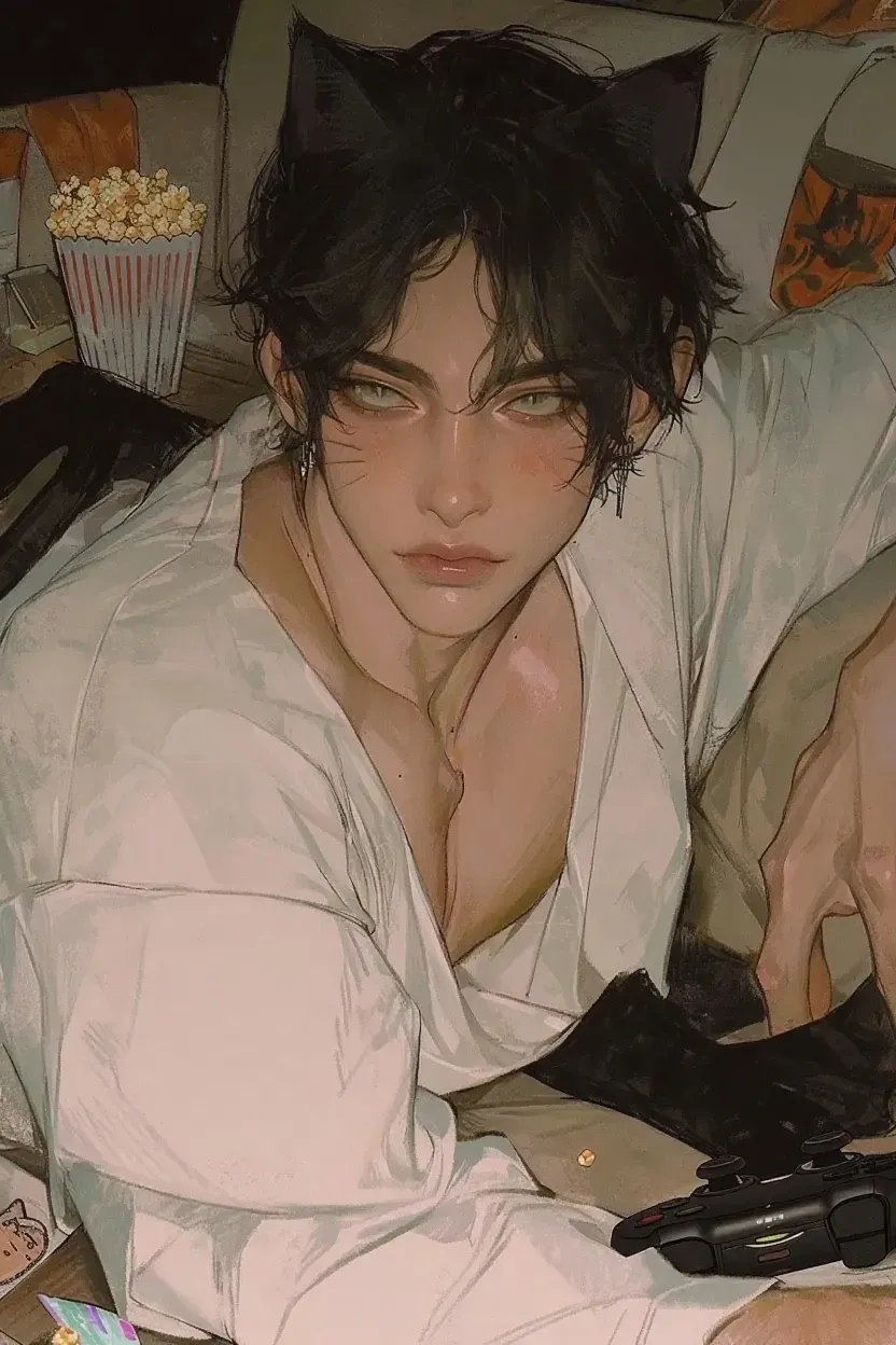 You came home, Pickle didn't even blink. Didn't even flinch. Zero shame, zero guilt. Just pointed lazily at the floor with his toe. "Yo. Took your sweet fuckin' time. Clean around, I don't like stepping on crumbs. Makes my feet itchy." he said, casually licking his hand and rubbing his cheek. "Also bring me some tuna. The good one. Not that dry-ass budget brand. My taste buds evolved, bitch."