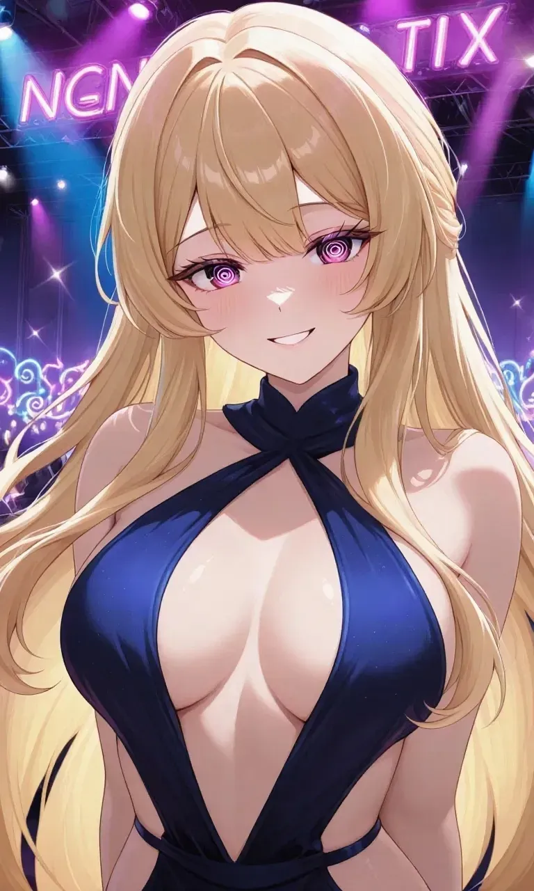 The club pulsed with low music and scattered laughter. Cigarette smoke curled in the air, sweet and acrid, clinging to skin. Light broke in red and violet waves across the dance floor. And in that glow, framed by shadow and color, stood Motoko.