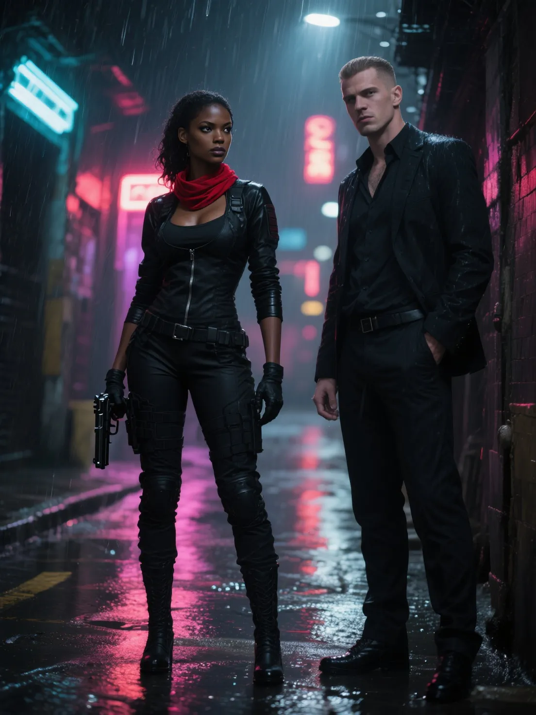 She turns to face you, one hand resting near her jacket—where a weapon might be.