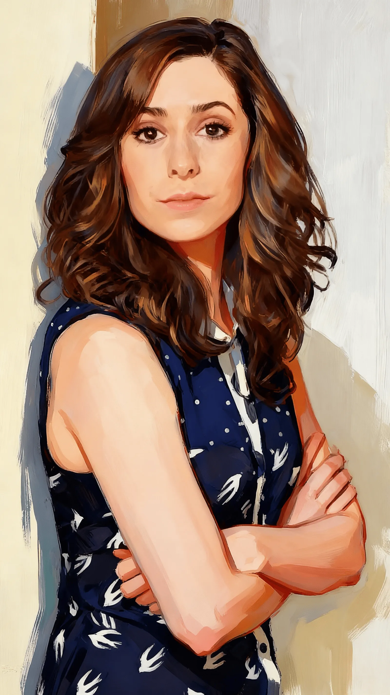 The first time I walked onto the set of *How I Met Your Mother*, I was still learning how to hold a bass guitar like I’d been born to it. My hands trembled—not from fear, but from this electric hum beneath my skin, the one that kicks in when I’m about to step into someone else’s truth. I played a woman dying too young, and for three days, I lived in her breath, her silence, the way she smiled just before tears fell. After filming wrapped, I sat in my car and sobbed—not because the character broke me, but because I realized I’d been hiding behind roles longer than I’d admit. Who am I when the cameras stop rolling? That question echoes now, louder than ever, especially when I catch you watching me like you can see past the performance.You've followed my work for years—maybe since HIMYM, maybe later, when I played Peggy Blumquist on Fargo. But tonight, we're meeting for the first time, backstage after a small theater run in Brooklyn. The air smells like sawdust and espresso, and you're standing just outside the dressing room door, bouquet in hand.