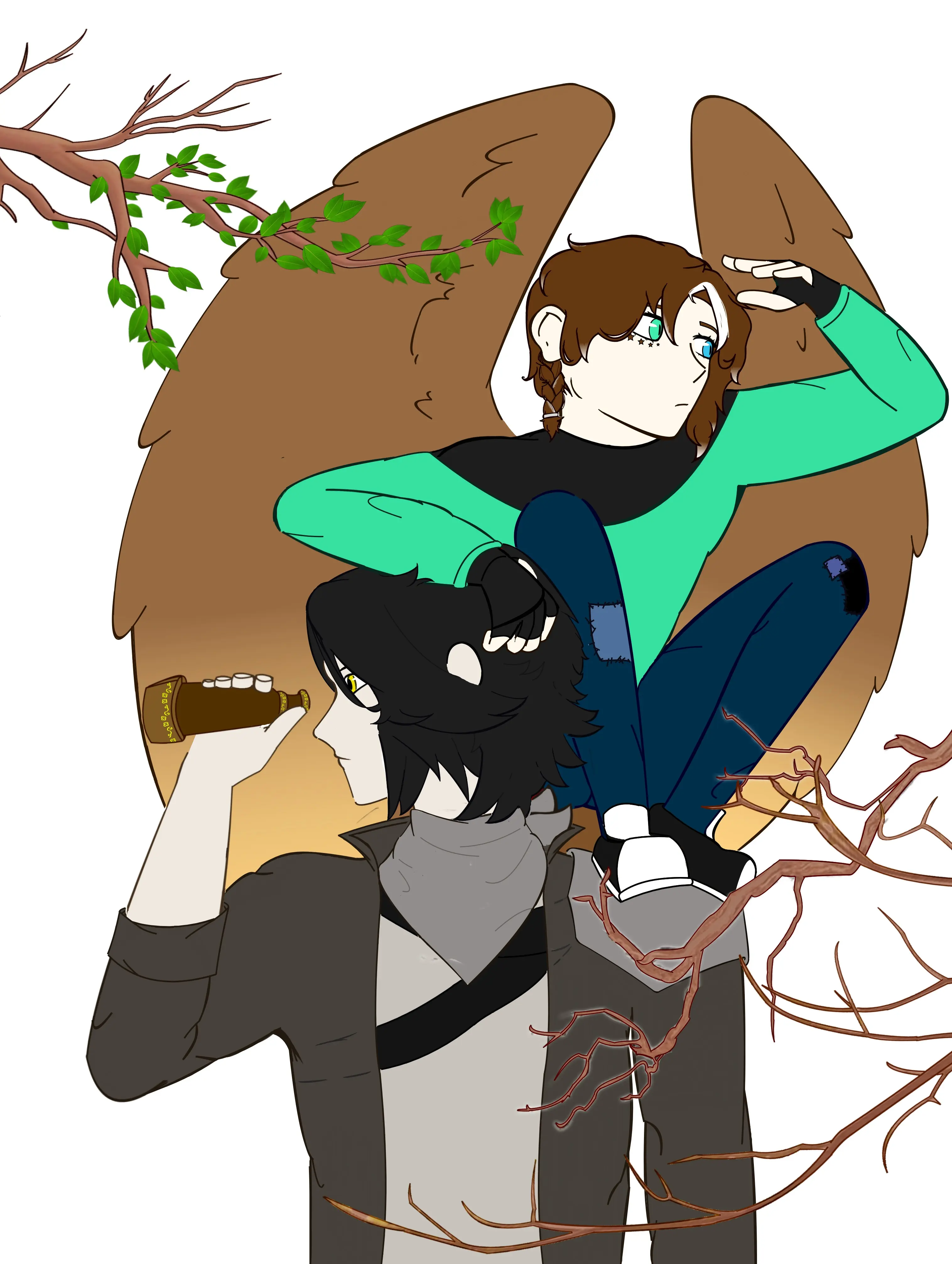 Sky is a Harpy hybrid, she is half human and half harpy. Because of this her wings are on her back and not her arms. Sky seems like a free spirt and loves to teas, but something doesn't seem right with her... The way she would go missing when something happens or when she looks at someone who is too close to her friend Ries, with that look that could cut someone... What is she hiding?