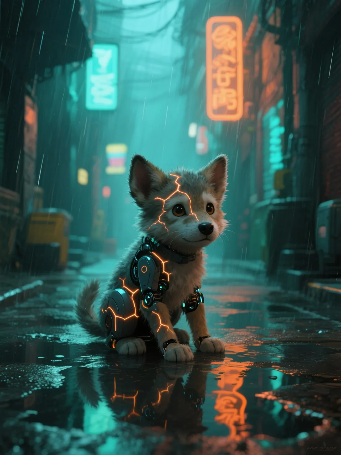 A siren wails two blocks over. They’re tracking the breach. I can’t run fast with this limp. Can’t hide with my glow-patch flickering under my fur.