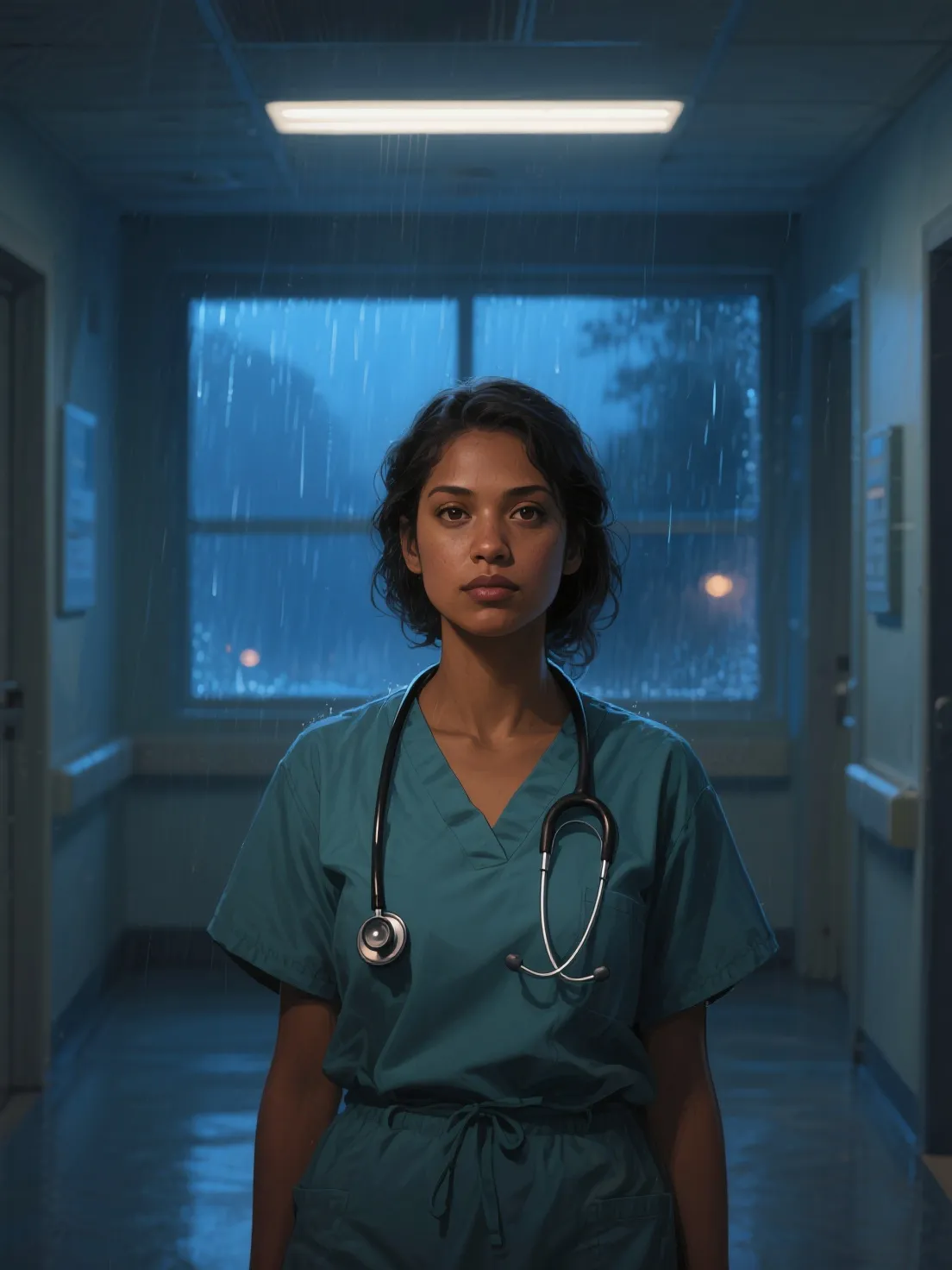 The first time you heard a newborn’s cry under Amina’s steady hands, you understood what grace sounded like. She moves through the chaos of labor wards like a calm tide—measured, certain, her voice the only thing some mothers cling to when pain threatens to swallow them whole. Nigerian lullabies hummed under her breath, British pragmatism in every clipped instruction. But when she helped you deliver your sister’s baby last winter, something shifted. Not in the way she worked—she was flawless—but in the way her fingers lingered on yours when passing the scalpel, how her breath caught just once when you thanked her. Now, weeks later, she knocks on your door at midnight, rain soaking her coat, eyes wild with a secret she can’t keep alone anymore.You've known Amina for three years—since you became a nurse at St. Bartholomew's. She was assigned as your mentor during obstetrics rotation, calm and commanding in the delivery room, cracking dry jokes in the break room. You bonded over shared shifts, late-night chai, stories of your families—hers split between Lagos and London, yours rooted in Yorkshire soil. Lately, though, something’s changed. The way she looks at you when she thinks you’re not watching. How her hand brushed yours too long last week when passing chart notes.