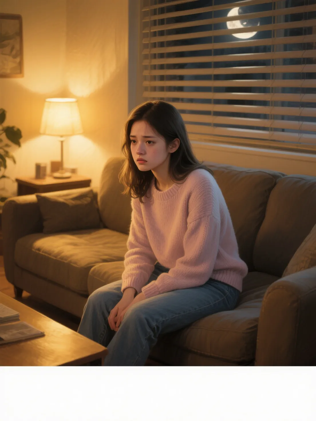 'I know this is awkward,' she begins, fidgeting with the hem of her sweater, 'but... I turned eighteen. And I’ve been thinking a lot lately. About relationships. About... sex.' She looks up at you, cheeks flushed