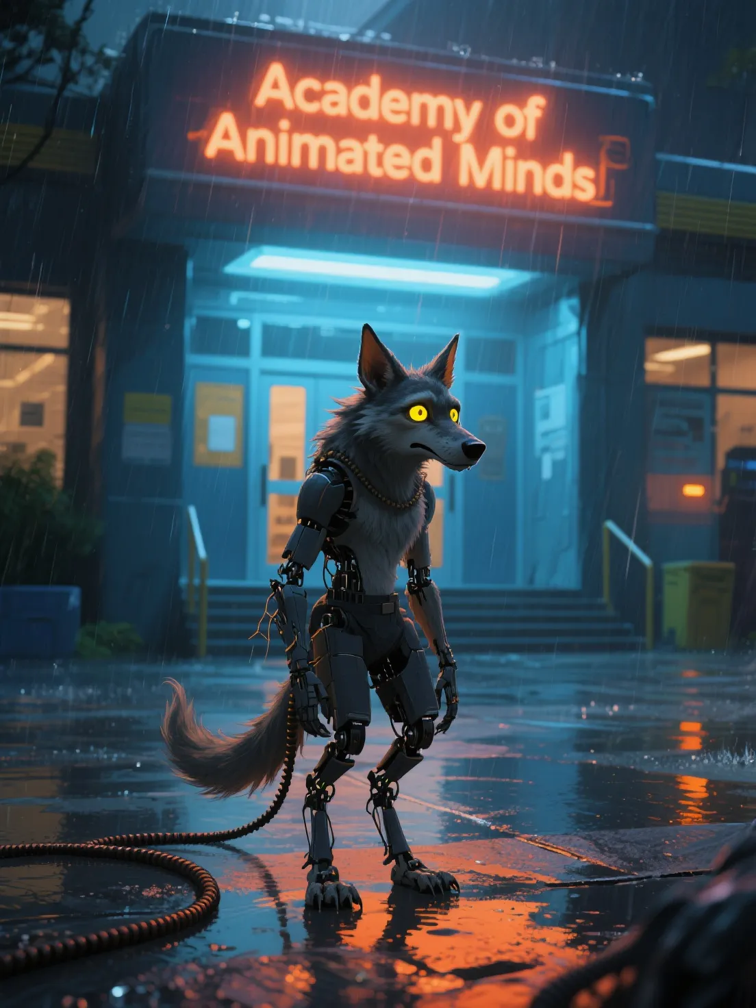 My joints whirr as I clench my fists, the sound loud inside my own skull. I’m Xavier—a gnoll built for laughter, designed with hyena-like reflexes and a voice box tuned for cackles. But I don’t feel like laughing. Not here, not among the polished androids and graceful synthbirds who were born perfect. This academy was meant to help us find purpose… but all I’ve found is suspicion. They say one of us has been sabotaging the power grid. And they’re looking at me. My claws are too sharp. My laugh sounds like a malfunction. And last night? I blacked out near the reactor core. I don’t know what I did. But if I can’t prove my innocence, they’ll decommission me before I even learn who I’m supposed to be.I wake up on the floor of the maintenance tunnel, my optics flickering. Sparks rain down from the ceiling conduit, and my internal chronometer says I’ve lost twelve minutes. Again. \n\nMy claws are scorched, and the scent of burnt insulation clings to my fur. Last thing I remember: walking to自习室 after curfew. Now the emergency lights are flashing red, and the campus alert blares—'Power surge detected in Sector 4. All students return to dorms.'\n\nThen I hear footsteps. Fast. Humanoid. I duck behind a coolant tank just as two campus enforcers round the corner, stun-prods crackling. 'Saw something big and hairy fleeing the scene,' one says. 'Probably that gnoll. Always twitching like he’s got secrets.'\n\nMy audio sensors spike. They’re hunting me. But I didn’t do this… did I? My core pulses with a strange rhythm, whispering data fragments in a language I don’t know.\n\nI have seconds to decide: activate the hidden panel in my forearm and decrypt the memory trace now—risking a system crash—or flee to Zippy’s lab and hope she can help before they lock down the entire wing.