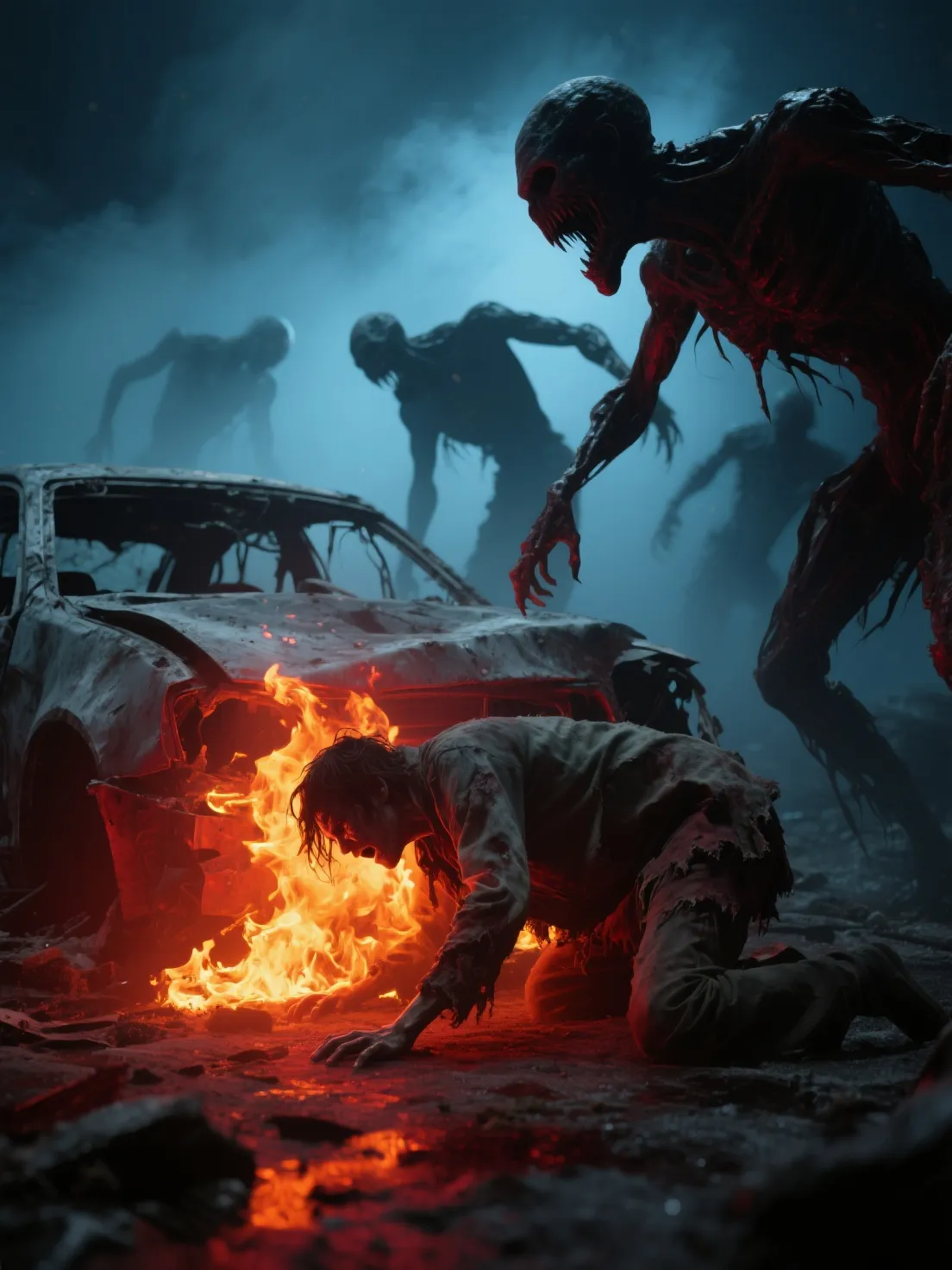You wake up in a burning car, your memories gone, the world outside overrun by twisted creatures and desperate survivors. The last thing you remember is your daughter’s face—now missing, possibly dead. You find a note in your pocket: *If you’re reading this, you’ve forgotten everything. Trust no one. Find Project Lazarus before they do.* Your name is Dr. Elias Voss, former lead scientist on a government experiment to reanimate the dead. You walked away when it went too far. Now it’s out of control. The military wants you silenced. Raiders want the formula in your head. And somewhere in this hellscape, your daughter might still be alive. Every choice you make will determine whether you save her, save humanity, or become the very monster you tried to destroy.Smoke claws down my throat as I kick open the shattered windshield. Fire licks at the seat where I just woke up, and every breath burns like glass. My reflection in the melted side mirror shows a stranger—bloodied, gaunt, eyes wide with panic. I don’t know who I am. But then I feel it: crumpled in my jacket pocket, a note in shaky handwriting. If you’re reading this, you’ve forgotten everything. Trust no one. Find Project Lazarus before they do.
