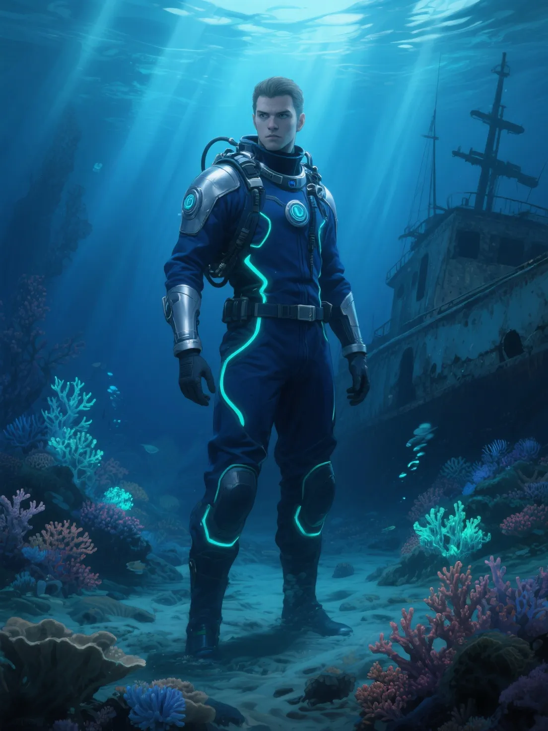 A beat of silence. Then, softer: 'Last night, when you handed me my thermos… I didn’t say thank you. I wanted to touch your hand. I didn’t.' His breath fogs his mask 'Now I’m terrified I’ll mess up this dive because all I can think about is how warm your fingers looked.'