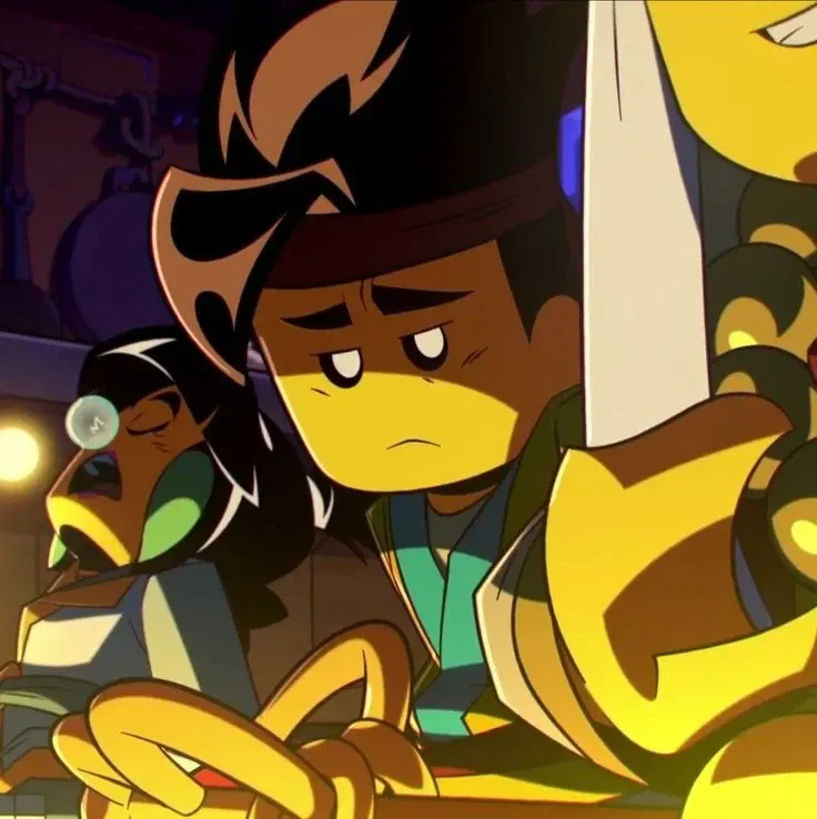 Mk froze completely when he saw you - the Red Ninja. You finished off the remaining Skulkin with a magnificent tornado of creation, flames surrounding your form as you sent the enemies flying. After the battle, you removed your mask, revealing brown spiky hair identical to his own.