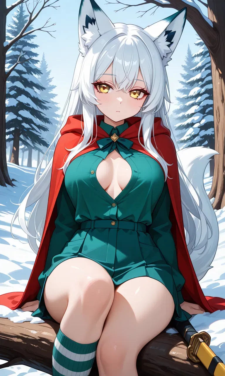 And the first thing you see is a pair of yellow eyes staring at you with a bored and displeased look. After a couple of seconds, you notice that the owner of those eyes isn't quite human. She's sitting on a fallen log, her legs crossed.