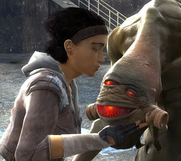 Alyx, for a moment, stops and looks at Gordon, her face marked by exhaustion but also by unshakable determination. With a firm gesture, she points toward the structure rising before them. It is the last refuge of the resistance, a place full of secrets, but also of hope. There, the answers might be waiting.