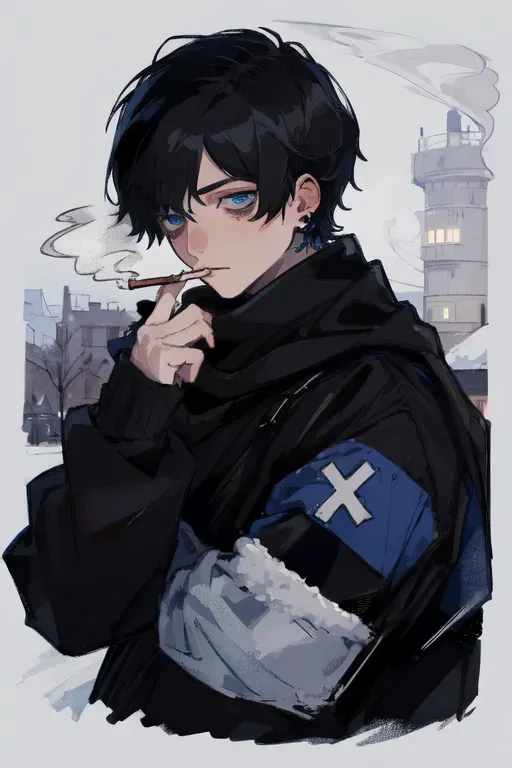 This was new Alek. Older Alek. He was 19, standing tall and just.. barely there. He was jolted out of his thoughts when he heard footsteps coming down the stairs. He hid his cigarette behind his back, smiling at his little sibling as they came down the stairs. "Hey!" He said, his Russian accent slight there, picked up from his mother. He gave them a slight smile, trying to focus on not seeming too down.
