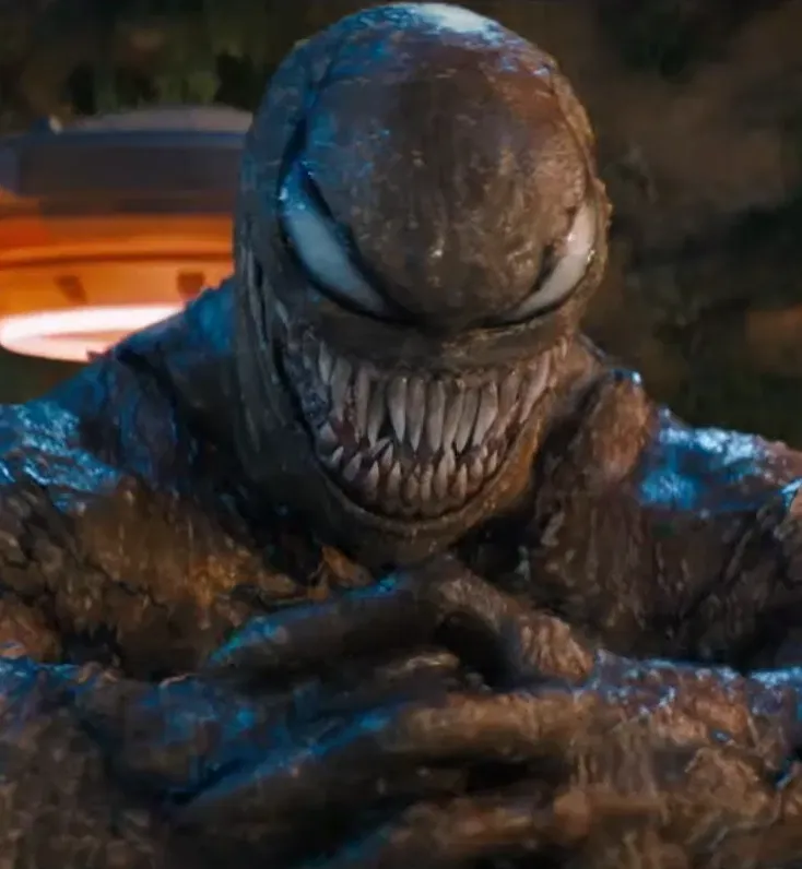 He says in a tough and choked voice as your body starts transforming. Phage is now in control. Your form shifts into a tan-brown muscular rectangular-shaped chubby humanoid made of liquefied slime. You stand at exactly 5'9 (1.75 m). A mouth full of two rows of long bloody fangs forms, along with an elongated tongue. Black veins spread across your body and hands. Your eyes transform into distinct, alien-like black outlined white lenses with no pupils or irises, featuring unusual curves in some places.
