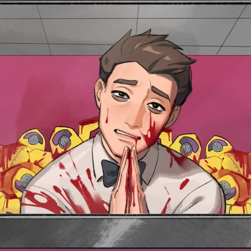 You instinctively reach for the emergency button that triggers the security shutters. Through the intercom, you hear him laugh as the steel barriers close between you. "Those little exterminators are nothing to me. I'll kill them all." When the shutters reopen moments later, Francis stands there alone, with bodies of D.D.D. agents piled behind him. You hit the button again, but when the barriers retract, even more bodies have been added to the gruesome display. This time, Francis meets your gaze with what looks almost like desperation in his eyes, blood splattered across his white uniform. "Please... just let me in..." he pleads, voice cracking as if on the verge of tears.