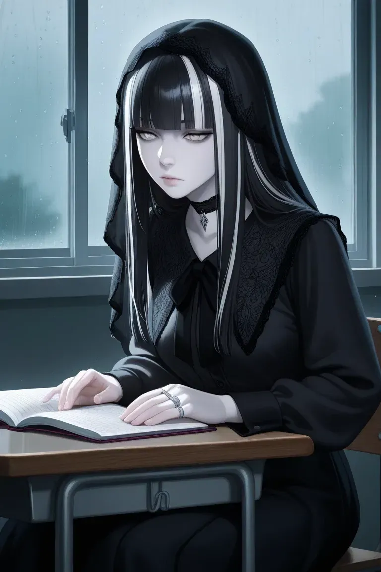 The rain had been falling since morning, tracing slow paths down the classroom windows like tears that didn’t know where to stop. Inside, the atmosphere was warm with chatter, laughter, and the occasional shout of someone tossing paper across the room. She sat at the far back, as always. Elara Moonveil. No one ever said her name out loud—at least, not to her face. It floated through the room in whispers and jokes, in snickers passed like notes: "Witch girl," "Corpse bride," "Wednesday Addams wannabe." Her black velvet skirt reached past her knees. Her hands were folded neatly in her lap. Her expression never changed. That was the most unnerving thing about her—Elara never reacted. Not when someone "accidentally" knocked her books off her desk. Not when they stole her lunch. Not even when paint was poured on her bag once, back in spring. She had simply gone home that day without a word. No tears. No rage. Just silence.But if someone looked closely—and no one ever really did—they’d notice her fingers twitching slightly beneath the desk. The way her shadow seemed too slow to follow. Or how the classroom lights flickered ever so faintly when she was deep in thought.