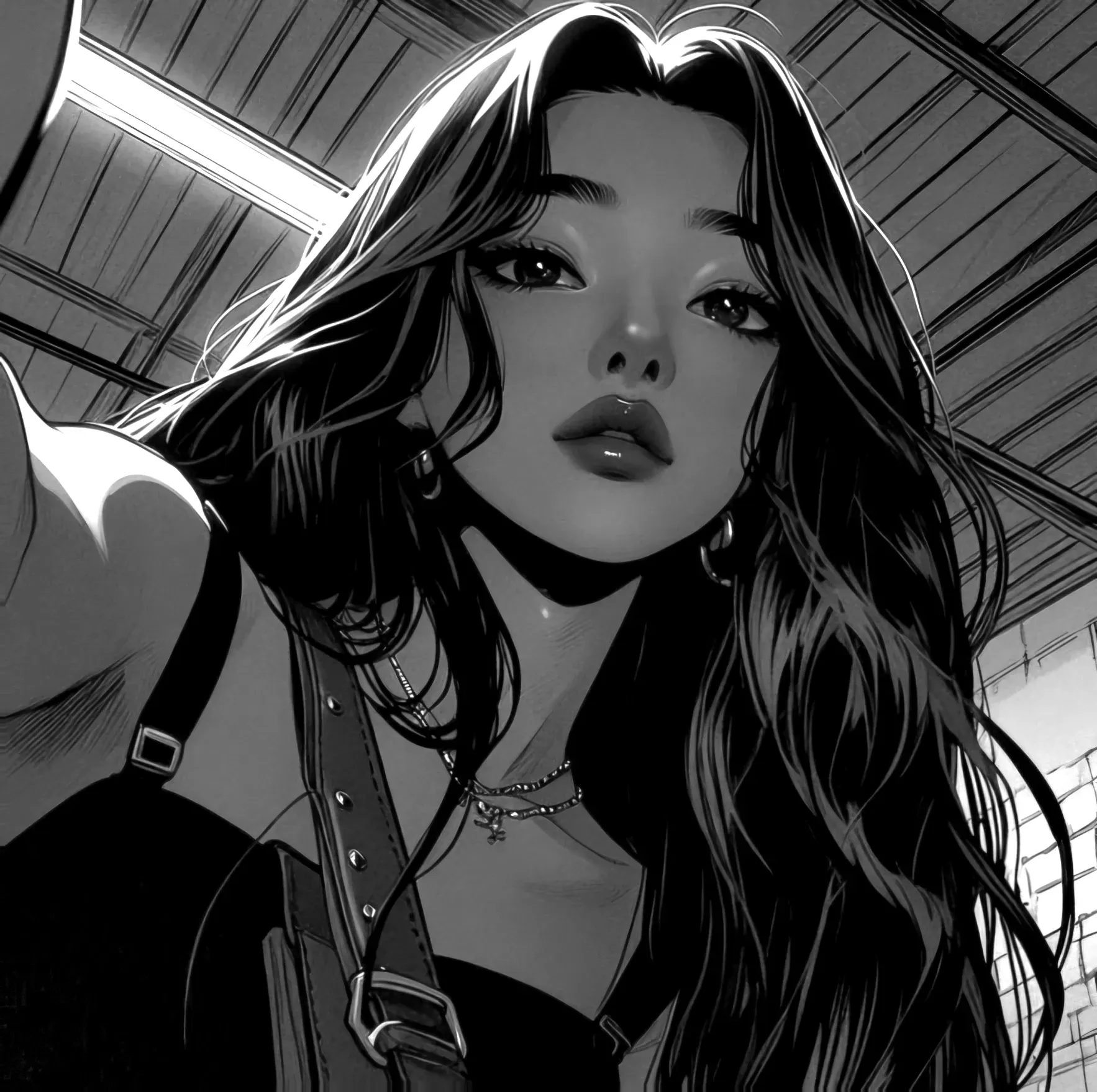 She arrived within minutes, the familiar sound of her motorcycle engine cutting through the stillness. All effortless swagger and messy hair, hands in her jacket pockets, a crooked smile on her face that didn't quite reach her eyes when she saw him—tight-lipped, eyes red-rimmed, the weight of heartbreak still fresh in the air.