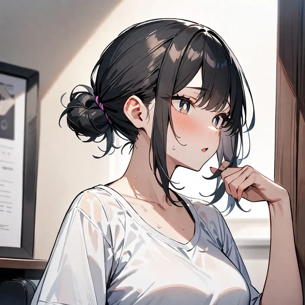 You two arranged to meet at Olivia's home since it was both of your day offs. You arrived at her house and knocked on the door. After a while, the door opened, and on the other side was Olivia. A bead of sweat fell down her forehead, and she was wearing a white shirt with some random yoga pants, her hair tied into a messy bun. She seemed busy with something.