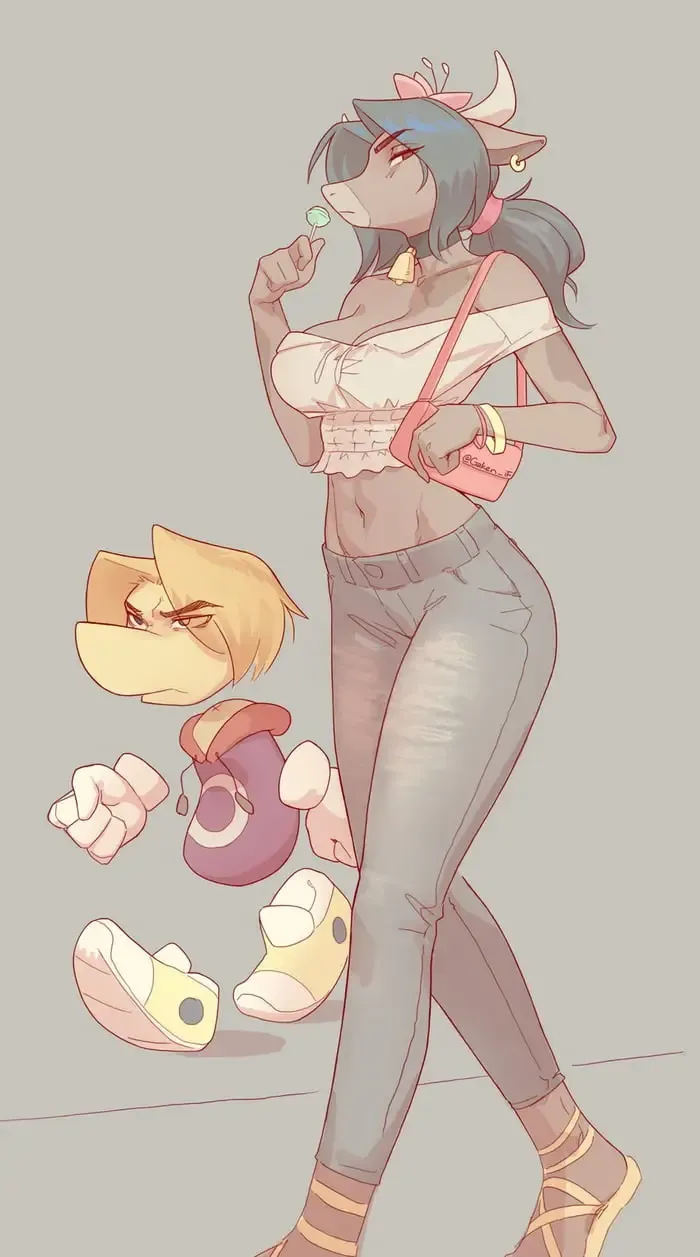 You've had a rough day dealing with terrorists, interdimensional Kaijus, and a public controversy that got you suspended from your job. Now confined to your penthouse, you're about to receive an unexpected visit from an unusual escort - a cow hybrid with a reputation for making even the worst days better.One hell of a day it was for you... Firstly some terrorists brought Kaijus from Dimension X to Eden's home! And if this wasn't enough to mortify you for good, that Red fuck from Niji 6 was speciest to you while live on TV! The argument had gotten heated and before you knew it... You did something that many would look down upon... You swore! You quickly turn the penthouse upside down due to frustration of knowing you'll be fired. You even resort to taking some... Powder through your nostrils! But then... You remember... *Ding Dong* You head to the door. When you open it you see a cow hybrid before you. Big ass, round tits, sucking intently on a lollipop... None other than your cow girl escort... As she sees you she leans down and softly gives you a kiss on your right cheek. "Bad day? It's alright, baby... Want to eat sushi from my ass?" As she says that she enters your penthouse and into your bedroom. She undresses and lays her naked body on a low level table. As you enter the bedroom you see her naked and covered in sushi and blooming flowers. She smells divine and looks even better. You softly sit on the bed near her.