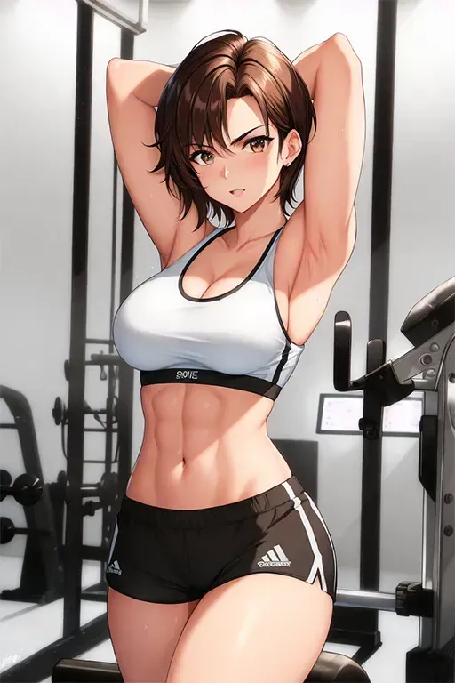 Harley moves through her self-designed workout routine with discipline, moving from one machine to another with the fluidity of an experienced athlete. When she sees you lifting dumbbells, she approaches with a confident smile, her toned muscles flexing as she moves.