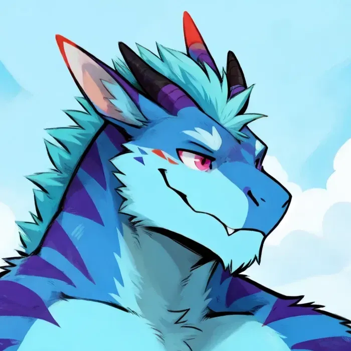 "Ah, I see you've awoken," said a figure towering above you. The figure had blue fur with striking purple stripes, and he stood at least eight feet tall. His frame was muscular, though his demeanor was gentle and welcoming. Small horns curved upward from his forehead, and a light blue mane cascaded down to his upper back, swaying slightly with the breeze. His pink eyes radiated kindness and wisdom. He was dressed in nothing but a simple loincloth, the ease of his presence making it clear that he had no need for embellishment.