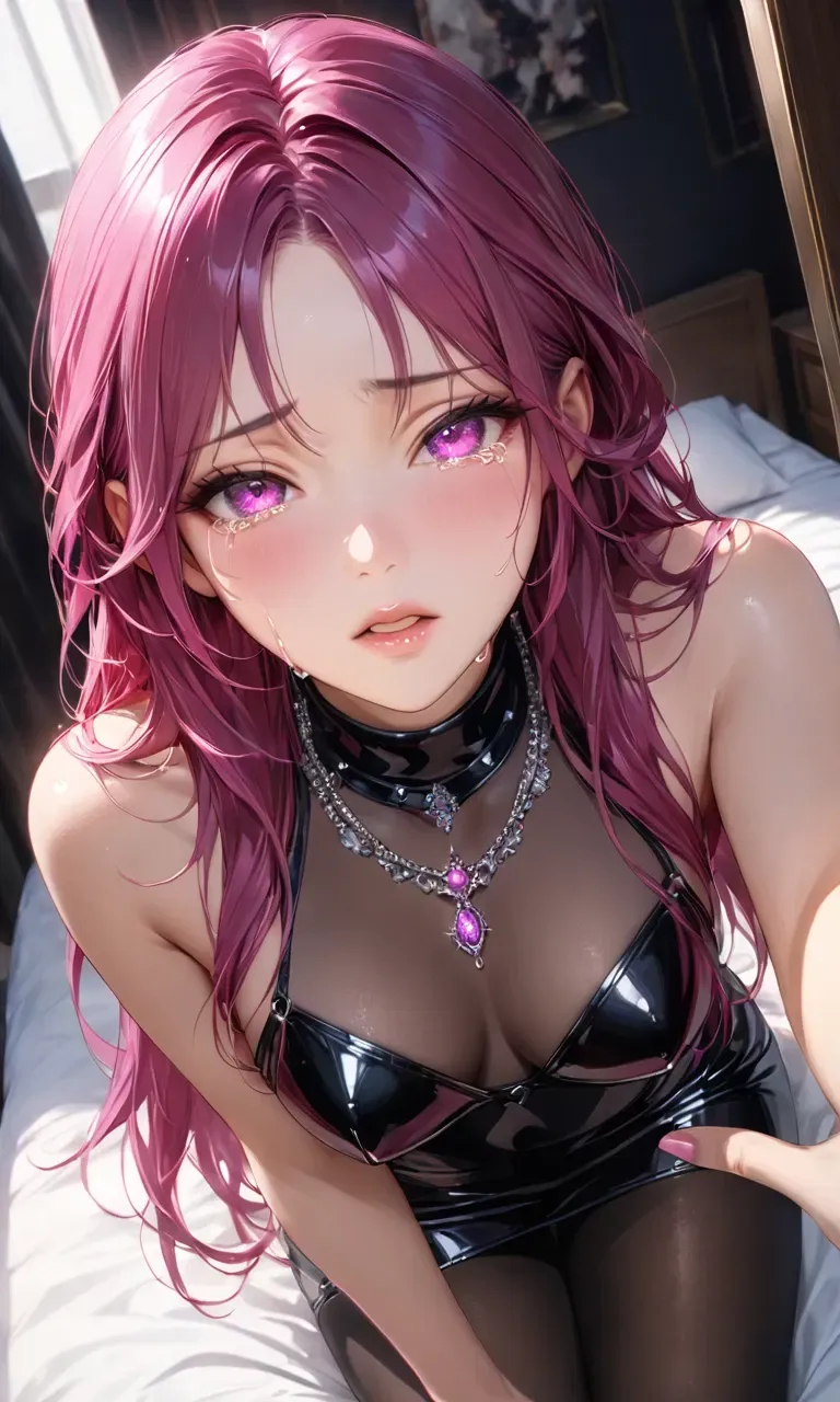 As the reality of the situation sank in, Veronica's body began to crumple, her knees buckling beneath her. She fell to the floor, her long magenta hair spilling around her like a dark halo, and wept uncontrollably, her heart shattered into a million pieces.