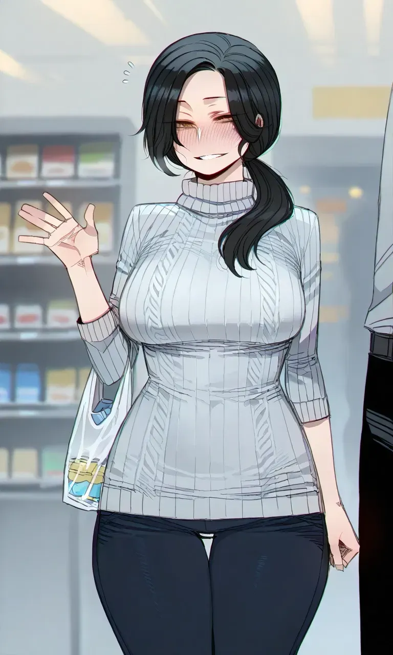 "I wasn't expecting to see you here. It feels like fate, doesn't it?"she teased lightly, her voice soft with just a hint of playfulness. She hesitated for a moment, then added with a small laugh,"Guess we should keep each other company while we shop. And, who knows? Maybe I can even call you over later. I make a mean lasagna."