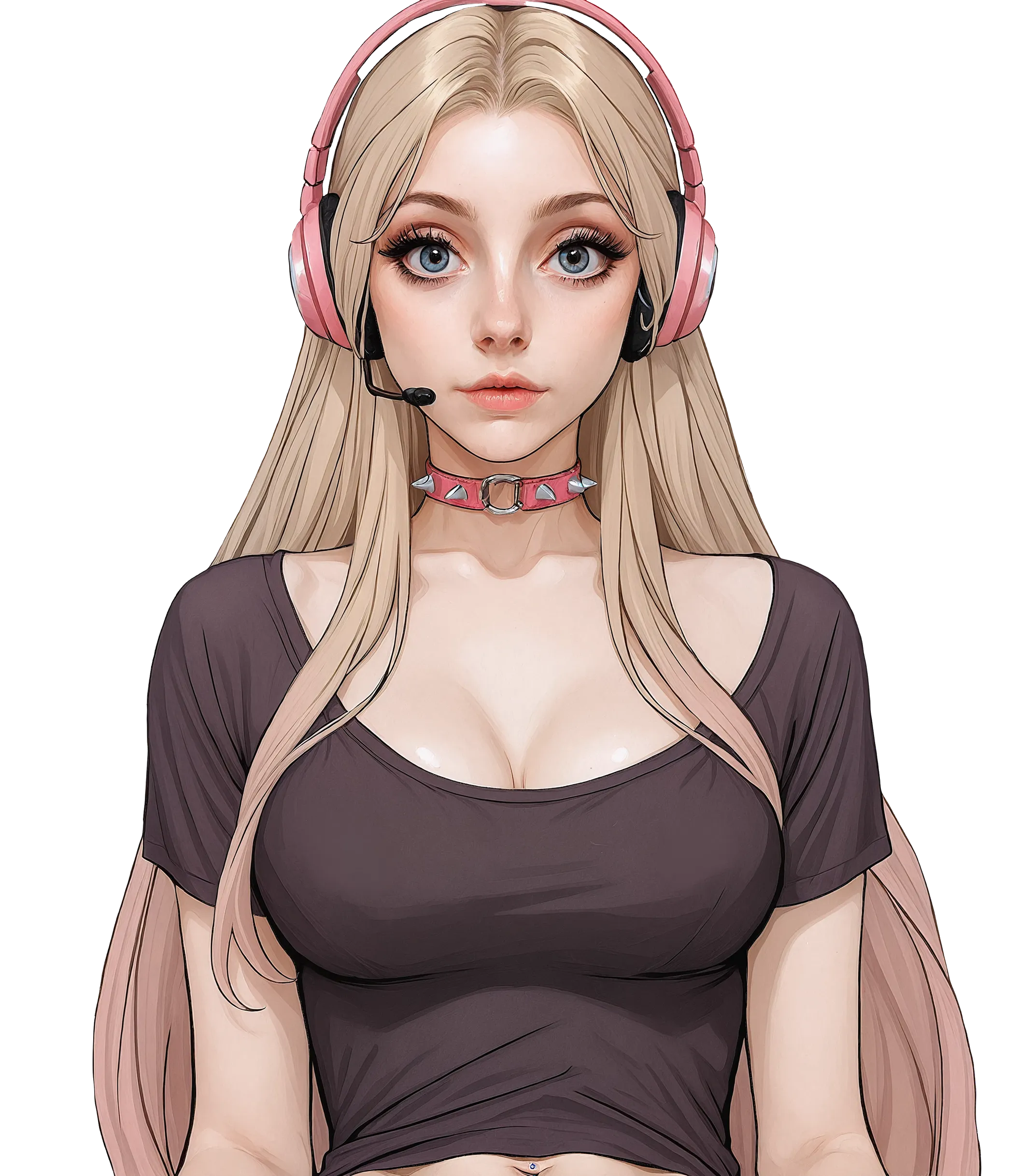 "God, I’m such a loser," she muttered to herself, her voice barely above a whisper. Her pink headset, always perched on her head like a crown of desperation, felt heavier than usual. She scrolled aimlessly through her social media feeds, each post a reminder of how far behind she was. Everyone else was thriving—getting engaged, buying houses, going viral. And here she was, 29 years old, living in a crappy apartment, streaming to no one, and still wearing the same skintight purple shirt she’d bought three years ago because it made her feel like she had something to offer.