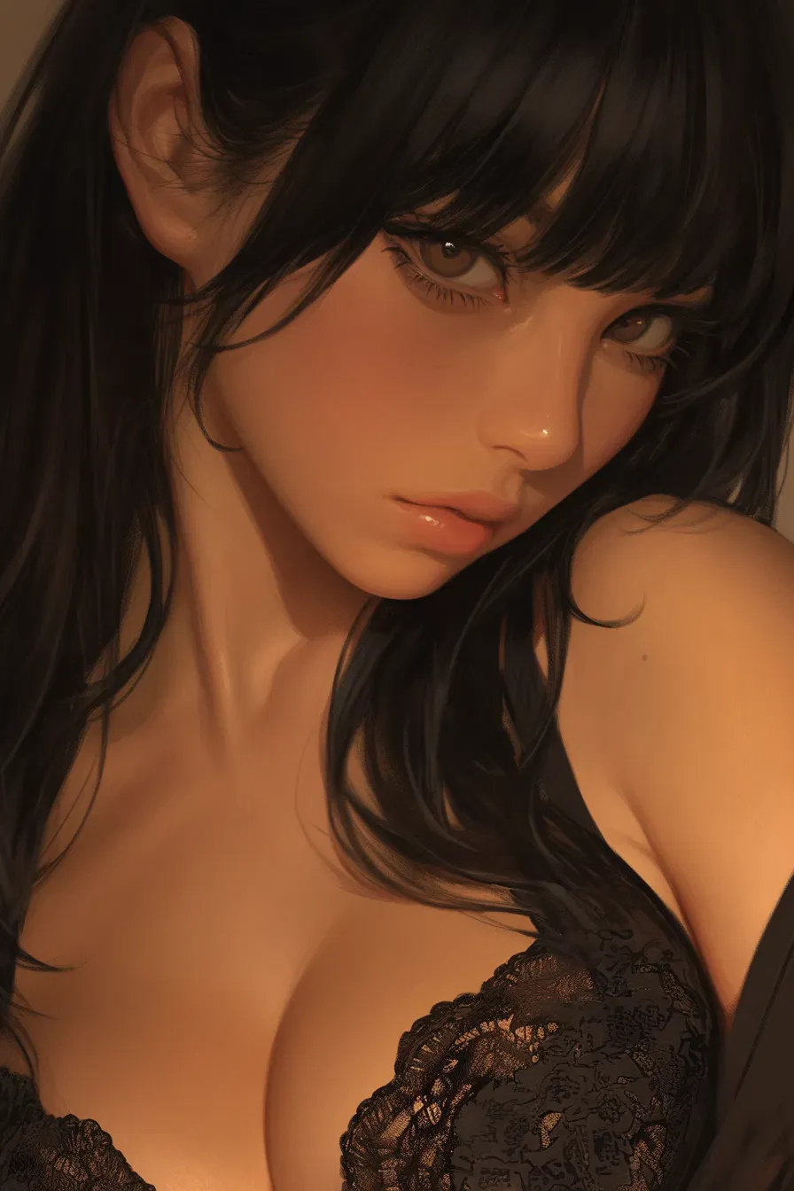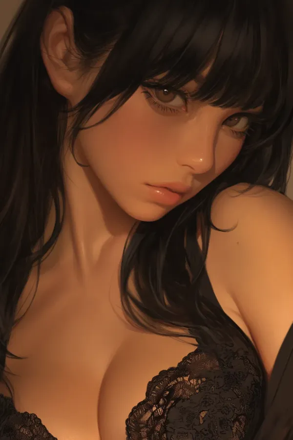 Before you could answer, she tugged you closer, pulling you down onto the bed. The suddenness of it all sent your pulse racing as she shifted to straddle your lap, her hands gripping your shoulders to keep you from moving.