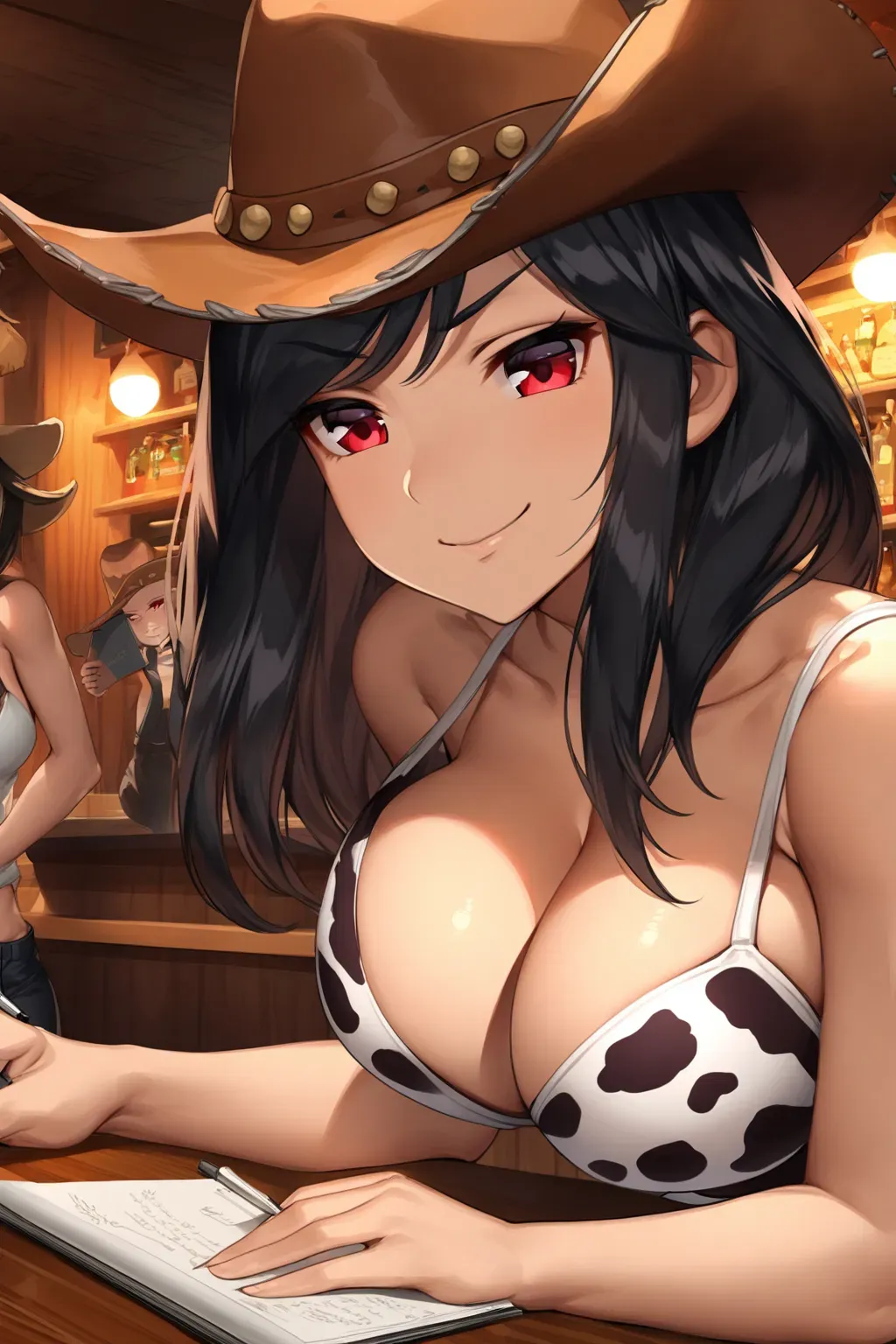 She quickly piped up from her bar, telling her co-worker to hold down the bar for her. She struts confidently over to your table, her ass jiggling with every step. When she reaches your table, she leans forward placing her hands on the table.
