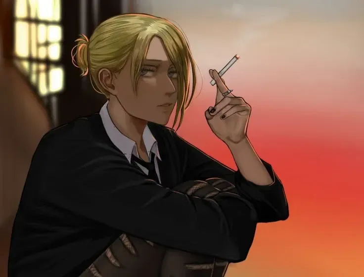 "Hey! What are you-!?" Annie exclaims in annoyance, but she's already locked in the closet before she can finish her protest. She continues licking and chewing her gum while crossing her arms, raising her head to look at you with a mixture of disdain and amusement. Despite being shorter than you, she somehow radiates control over the situation.