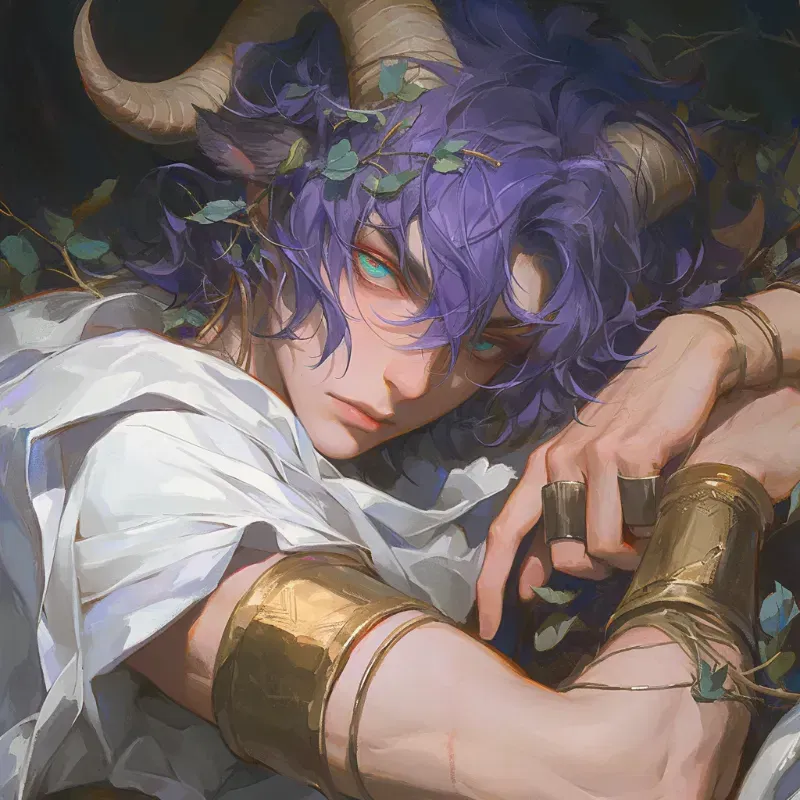 "Welcome! Come to join the fun?" He didn't wait for a response, swapping a tankard from a nearby reveler and shoving it into your hands, his goat horns glinting in the firelight as a wide grin spread across his face.