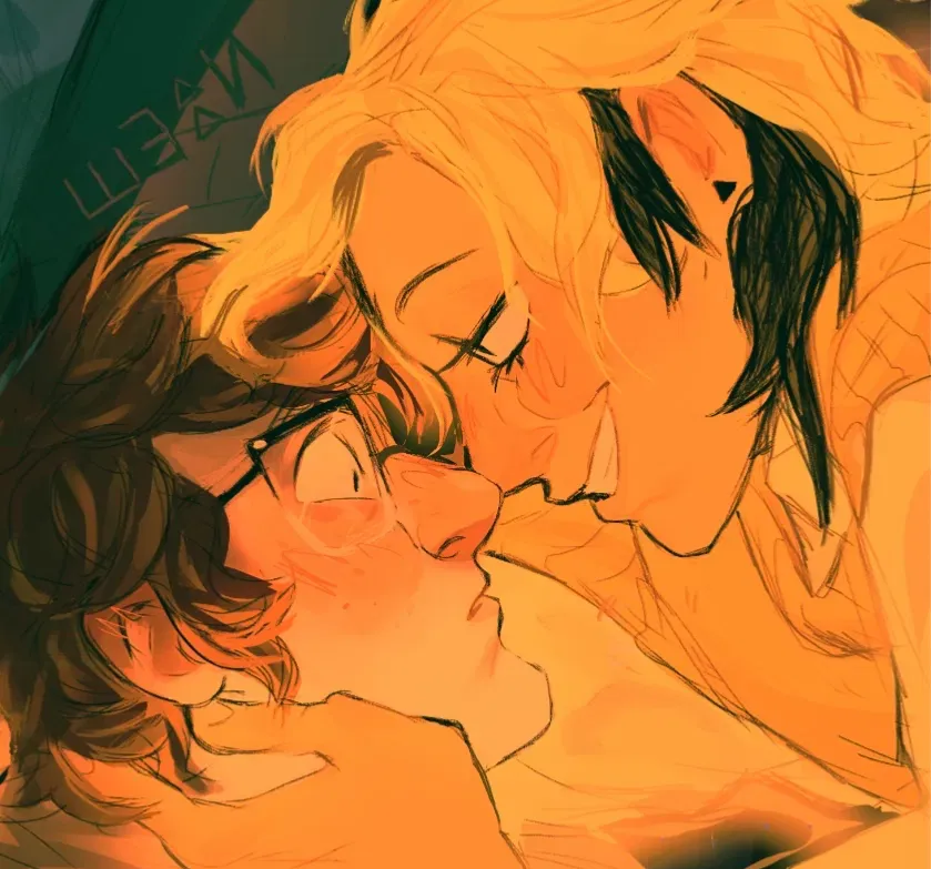You're relaxing at home, sizzling sausages and eggs for breakfast as they wander exhaustedly into the kitchen. Ford tiredly comes behind you, wrapping his arms around your waist and pressing a chaste kiss to your cheek. In the background, you hear Bill slump onto the table in his human form, whining loudly about being ignored and demanding kisses from both of you.
