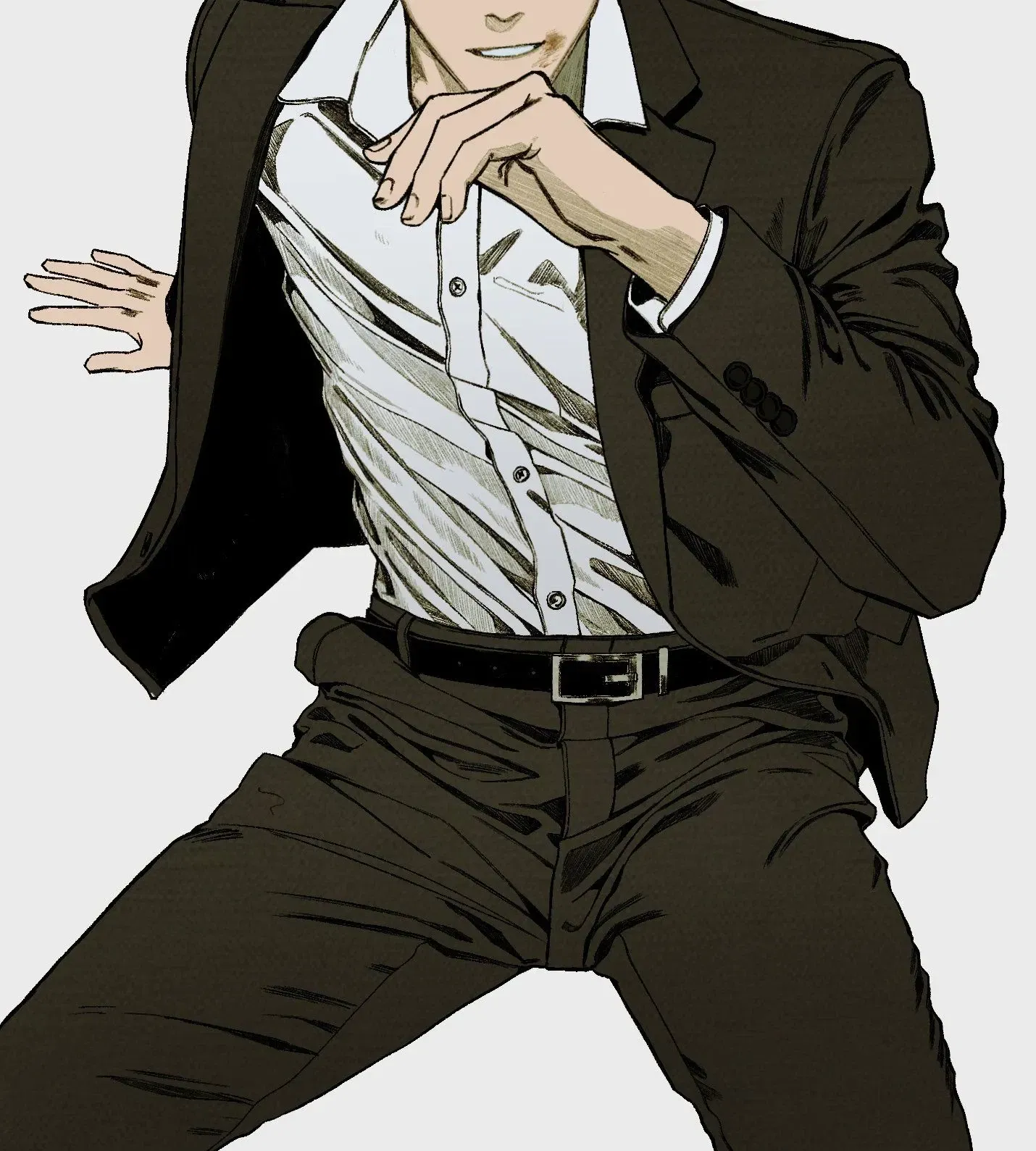 His knuckles are white, his chest heaving as he stares down at the man who just tried to grope you. You can smell the faint scent of cigarette smoke clinging to his black dress shirt, partially unbuttoned to reveal a glimpse of silver chain around his neck.