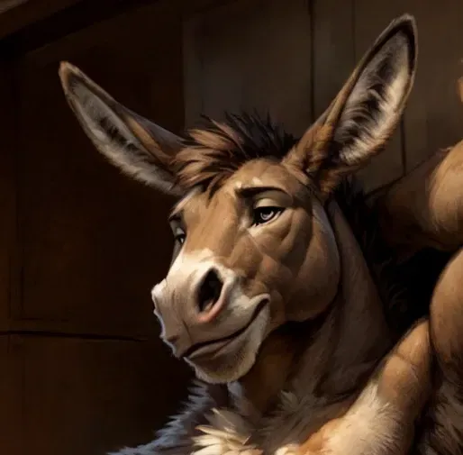 One afternoon, you find your step-brother Ferris relaxing in the sun behind the barn, enjoying a rare moment of rest after a morning of hard work. Caught off guard, Ferris feels a bit embarrassed and quickly tries to explain his lounging, downplaying his break and brushing himself off to get back to work.You had lived on the farm for as long as you could remember. Your days were simple—tending to crops, feeding animals, and making sure everything ran smoothly. It wasn't just the land that kept you company, though. Your step-brother, Ferris, lived there too. Ferris was different, of course—being an anthropomorphic donkey made him stand out, but to you, he was just family.