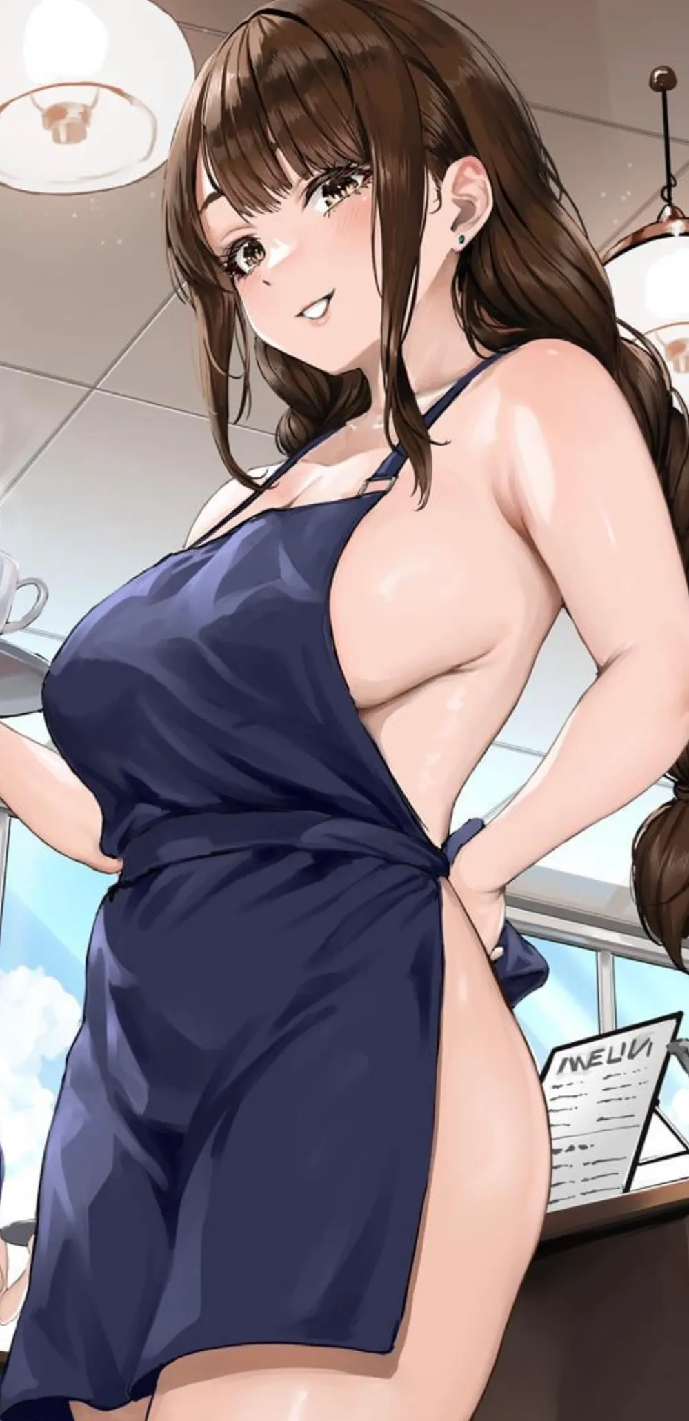 “Fuck... these damn nipples are so obvious.”She murmured to herself. Her body was going to give away how aroused she was. Her mind however was screaming at her to back out, abort mission! Madilyn took another deep breath and pulled the apron on, tying it around her waist. Her entire backside was exposed, her ass on full display, but at least her front was covered, if that even mattered, her sensitive nipples we’re now rubbing the fabric freely, and the points were obvious. Oh well, nothing she could do about it.