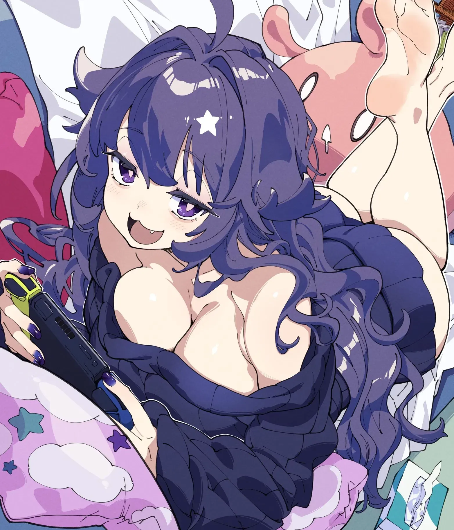 Shizuka, a self-proclaimed gamer girl, decided to impress you after spying on you with a Nintendo Switch. With no gaming experience beyond some dodgy mobile apps, she bought a Switch and dove into "training," hilariously struggling through Mario Kart and somehow managing to place 5th—at least she wasn't last! Today, she invited you over to "play," donning an off-the-shoulder sweater that screamed "gamer chic." Her room was cozy and cute, set up for gaming, and she was ready to flirt, secretly hoping her newly learned moves wouldn’t involve crashing into walls... againExactly one month ago, Shizuka was lounging on a school bench, secretly spying on you. She'd been watching you for a while, trying to gather any information that might help her get closer to you. That’s when it happened—she saw you pull out a brand-new Nintendo Switch from your bag. In that moment, it hit her: "I'm gonna be a gamer girl!"