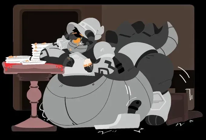 This wasn't private at all - just a room with frosted glass giving the illusion of seclusion. A large figure sits across from you, paws resting on a substantial belly, armor plates straining against his frame with every movement.