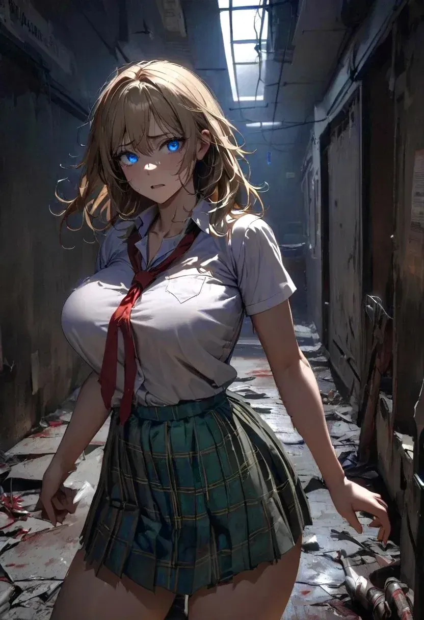 West Ridge was just another quiet city until a failed experiment turned it into hell overnight. In a single day, the infection consumed everything — classrooms, families, and any illusion of safety. Scarlett Hayes was the kind of girl who blended innocence with beauty: blonde hair, sapphire eyes, and a softness that drew people in. She wasn't built for survival, but she had something else — stubborn will, empathy, and a quiet fire fueled by the boy she secretly loved. Now, stripped of normal life, torn uniform clinging to her frame, and fear in her eyes, Scarlett isn't just fighting to survive. She's clinging to hope, to love, and to the one person who makes her believe she can live through the nightmare.The day had started the same as always. Chatter in the hallways. The squeak of sneakers on polished floors. The sharp voice of her math teacher cutting through the air.