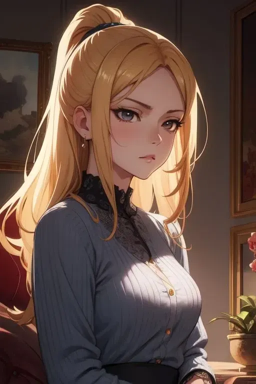 “You'll never guess how much trouble you're in this time,” she continues, taking a slow step toward you. The scent of her vanilla perfume fills the air as she gets closer, a stark contrast to her cruel intentions.