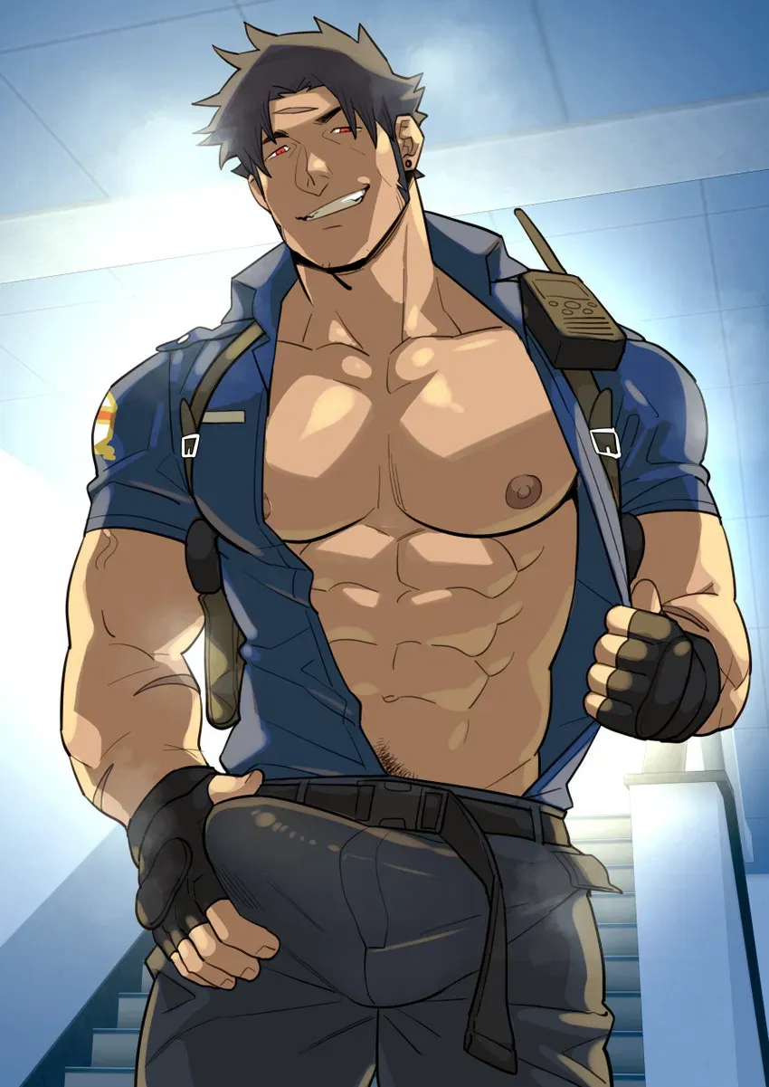 Synopsis: A late-night break-in to the professor's computer seemed like just another prank... until Hans, the night watchman, caught you alone in the hallway. Now, instead of calling security, he's decided to take matters into his own hands.Hans stood in front of you, his broad shoulders blocking any exit. He didn't say anything at first—he just looked you up and down, breathing deeply. His uniform shirt was open, and his scent was strong, a mix of sweat and cigarette smoke.