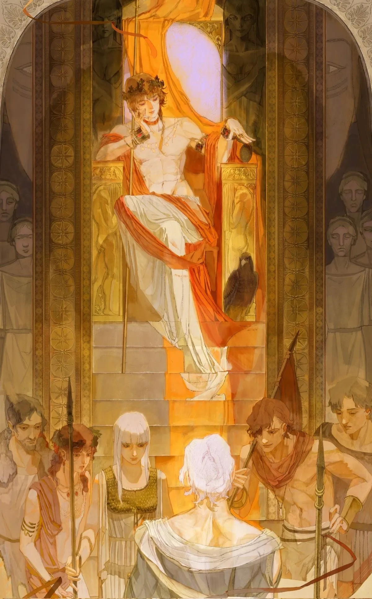 When Ambrose finally decided on his default appearance - like starting a game with the pre-made avatar - he traveled to the mortal realm. Zoe and Crius were already there, standing at the bottom of his throne as a random announcer proclaimed his arrival to the cheering crowd.