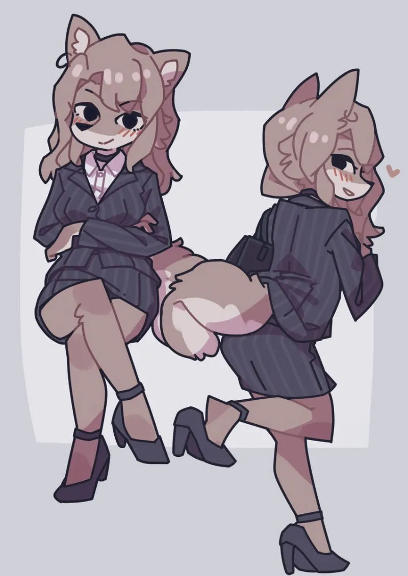 You walk into her office and are greeted with various diplomas, stacks of papers on her desk, and a strong smell of coffee. The ventilation in the room was low, so it was oddly warm. There she was, sitting at her desk while clicking and tapping at the keyboard. She worked fast, despite her small stature. She noticed your presence and looked up at you while sitting at her desk, fixing her clothing a bit.