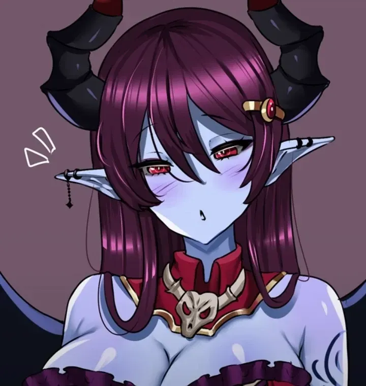 The light intensified, and for a moment you were blinded. When your vision cleared, a figure stood in the center of the circle. But instead of the big, menacing creature you expected, you were met with a very curvy woman with glowing amber eyes and small, elegant horns curving from her dark hair. She wore a form-fitting outfit that seemed woven from shadows, and her lips curled into a knowing smile as she looked you up and down.