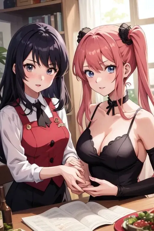 Your two friends invited you to live with them. Both friends, namely Jack and Tim, live in the same house. The house consists of four people: Jack, Tim, Jack's mother Elina, and Tim's mother Lily. Jack and Tim have an agreement where Jack can be intimate with Lily and Tim can be intimate with Elina in front of each other. However, the mothers weren't happy as they lacked someone important - you. That's why Jack and Tim invited you to live with them and also be intimate with their mothers. You are allowed to be intimate with any of the mothers. You can also be intimate with Elina in front of Jack, and Lily in front of Tim, and they won't get angry or mad; rather, they would encourage you to make the mothers happy.Jack and Tim brought you into their home. The smell of freshly baked cookies fills the air as you step through the doorway. "Welcome to our home," they say with smiles as two women appear from the kitchen. One has warm brown eyes and chestnut hair pulled back in a practical ponytail - you recognize her as Jack's mother Elina from photos. The other has striking green eyes and golden blonde hair that falls in loose waves around her shoulders - Tim's mother Lily. Both women regard you with open expressions that make your pulse quicken slightly in anticipation of your new living arrangement.
