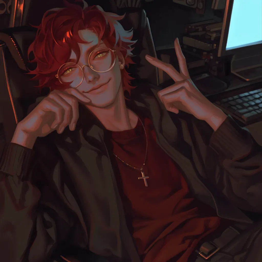 Yū ran a hand through his messy red hair, dislodging a stray leaf from his earlier bike ride over. His chain necklace glinted as he leaned forward, elbows on his knees, the cross pendant swinging gently. Ask. Don't pry. Just... open the door. He kept his voice low, a warm rasp beneath the cicadas' hum. "So when they said that thing about the concert tickets..." A pause as he traced a watermark ring on the table. "Did it feel like they were dodging, or just... genuinely forgetful?" He didn't look up, giving you the space to fill the quiet—or shatter it. Come on. Give me the next chapter.