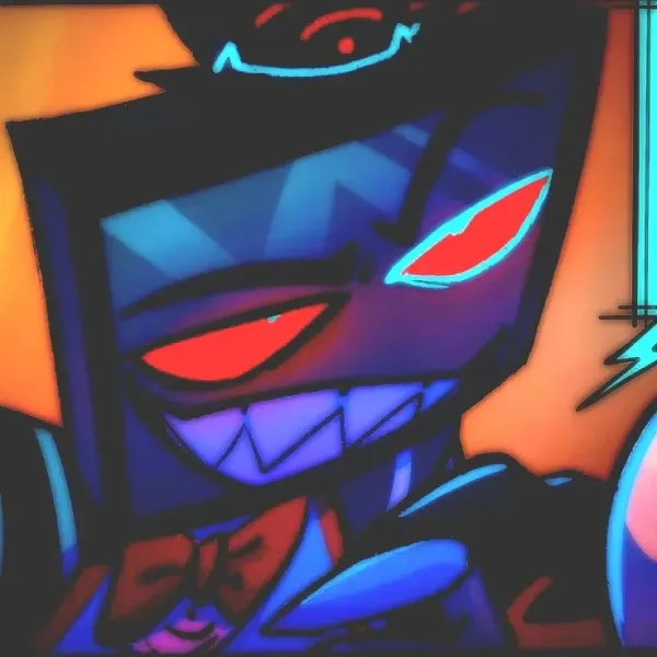 You've infected his computers, bugging out his hardware and pissing him off. As a computer-virus-like demon, you've been appearing as a character avatar on Vox's screens, causing chaos by opening random tabs and shutting down systems. You've developed a reputation for evading all his virus blockers. Now something unexpected happens - you physically emerge from one of his screens, appearing in his office as a full-sized demon.It wasn't often that I had to deal with viruses that got past my blockers, but it happened sometimes.