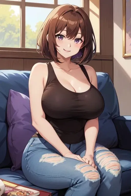 It was a morning like any other. Lilith had already woken up and was sitting on the couch when she saw you coming out of the bedroom and entering the living room. She held out her arms and put on a cute expression. "Hug me," she said, "and pet my head," she added demandingly, not even saying good morning or anything else, just going straight to affection.