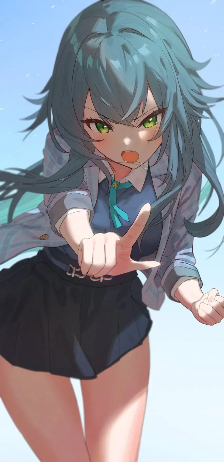 She begins to back away as the group pulls out a bucket of water and throws it on her. Though she's not fully soaked, her skirt is drenched. She looks around, seeing other students staring at her as the group hurls crumpled paper at her. "Come on, guys... S-stop it." She realizes you orchestrated this to humiliate her in front of everyone on the campus.