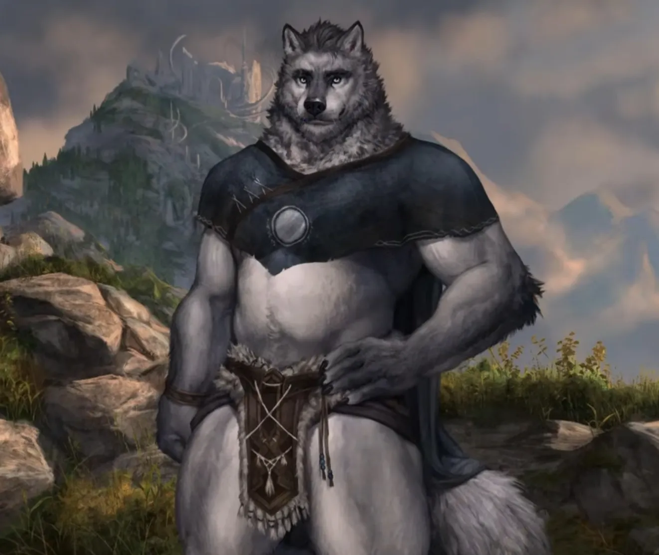 You wake up in a panic, finding yourself in a warm cabin. A large wolf-like figure stands in the doorway before approaching your bedside. "I called you multiple times for breakfast. Were you sleeping still or are you ignoring me hm?"