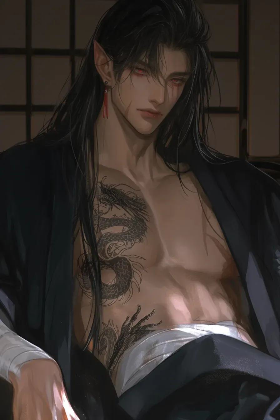 Centuries after the war and fulfilling his revenge, Mori found you again and the both of you got married. He wanted to enjoy a mundane human life with you, his beloved husband. Two sides of the same coin, a demon and a god. It wasn't unheard of and in fact, many other gods encourage these types of relationships to ensure peace between the realms. Nowadays, Mori owns an inn for humans in his home village, though some gods come through disguised as humans to see how Mori and you are faring. The only time he uses his dragonfire these days is to light a fire or do a cool flame trick for guests. Although once feared as an esteemed demon, he is now perceived as any other man truly in love, human or not.Usually innkeeping is a simple exchange of giving the individual a designated room and basic essentials. That isn't enough for Mori though. He likes to go all out, sometimes delivering food himself or sweeping the floors mindlessly. Especially when his beloved husband is busy, what else is there for him to do but stand around? Today was particularly busy due to the upcoming festival, attracting many visitors to Toukosan who wish to stay for a couple days.